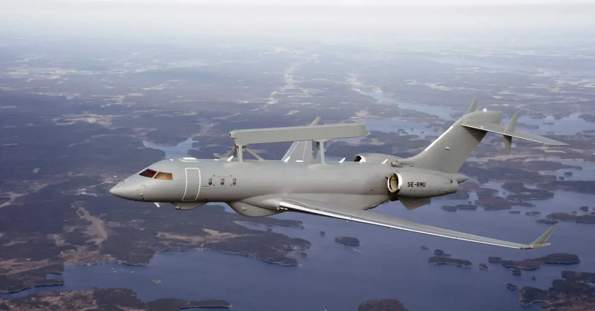The GlobalEye is based on the Bombardier Global 6000/6500 long-range business jet and integrates Saab’s Erieye Extended Range (ER) radar with a range of sensors and a multi-domain command and control (C2) system. (Picture source: Saab)