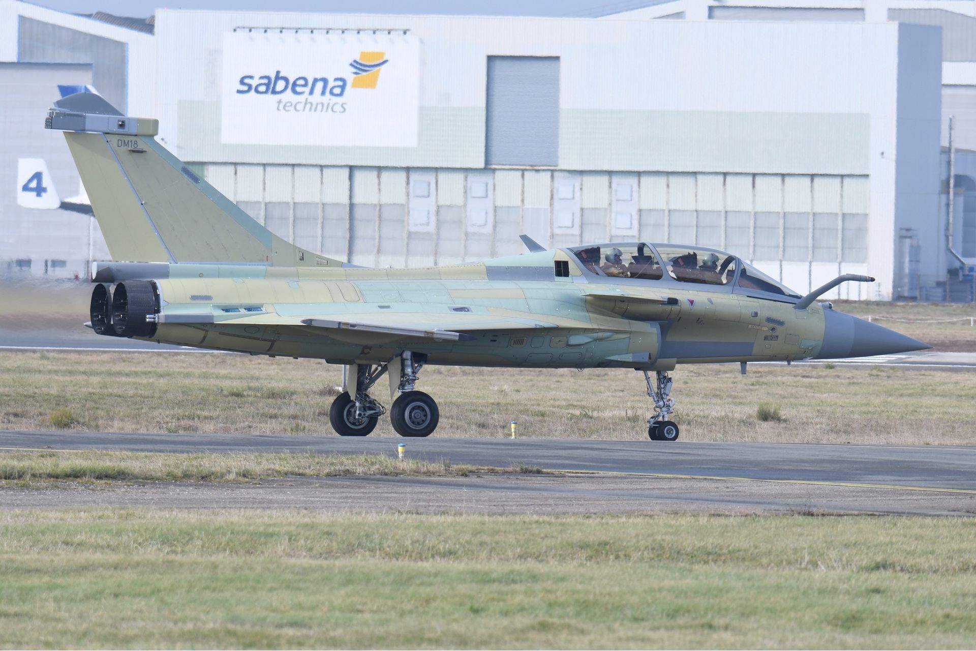 Egypt's Rafale Fighters Deliveries Advance with Two-Seater Spotted at Dassault Facility in France.