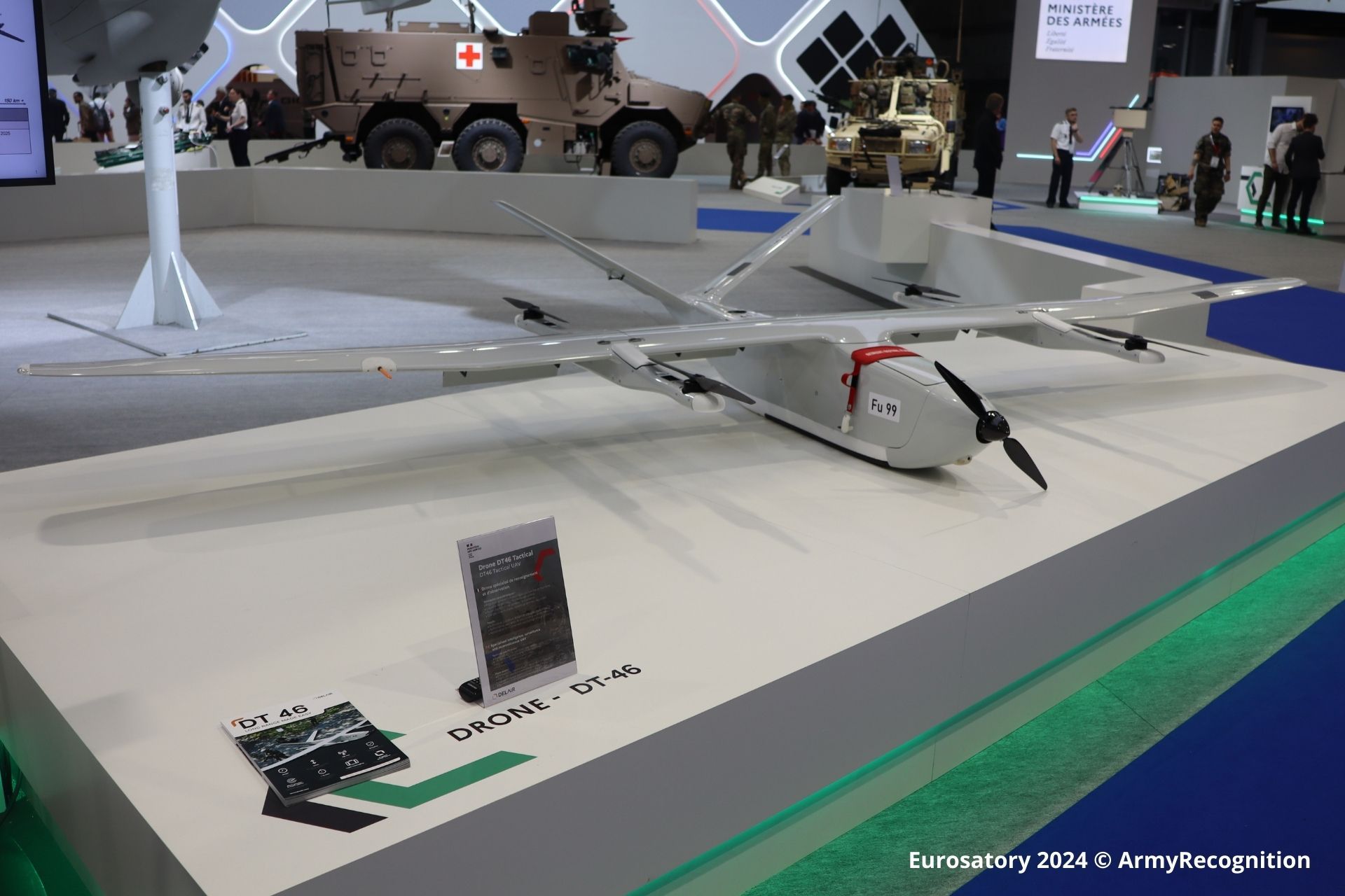 Thanks to its adaptable rotative arms, the DT-46 offers exceptional operational flexibility. It can operate in vertical takeoff and landing (VTOL) mode or as a fixed-wing drone. It boasts a range of 100 kilometers and an endurance of up to six hours in fixed-wing configuration or approximately three and a half hours in VTOL mode. The DT-46 can carry payloads of up to 5 kg, including advanced optronic sensors, LIDAR systems, and thermal cameras, making it well-suited for intelligence, surveillance, and target acquisition missions.