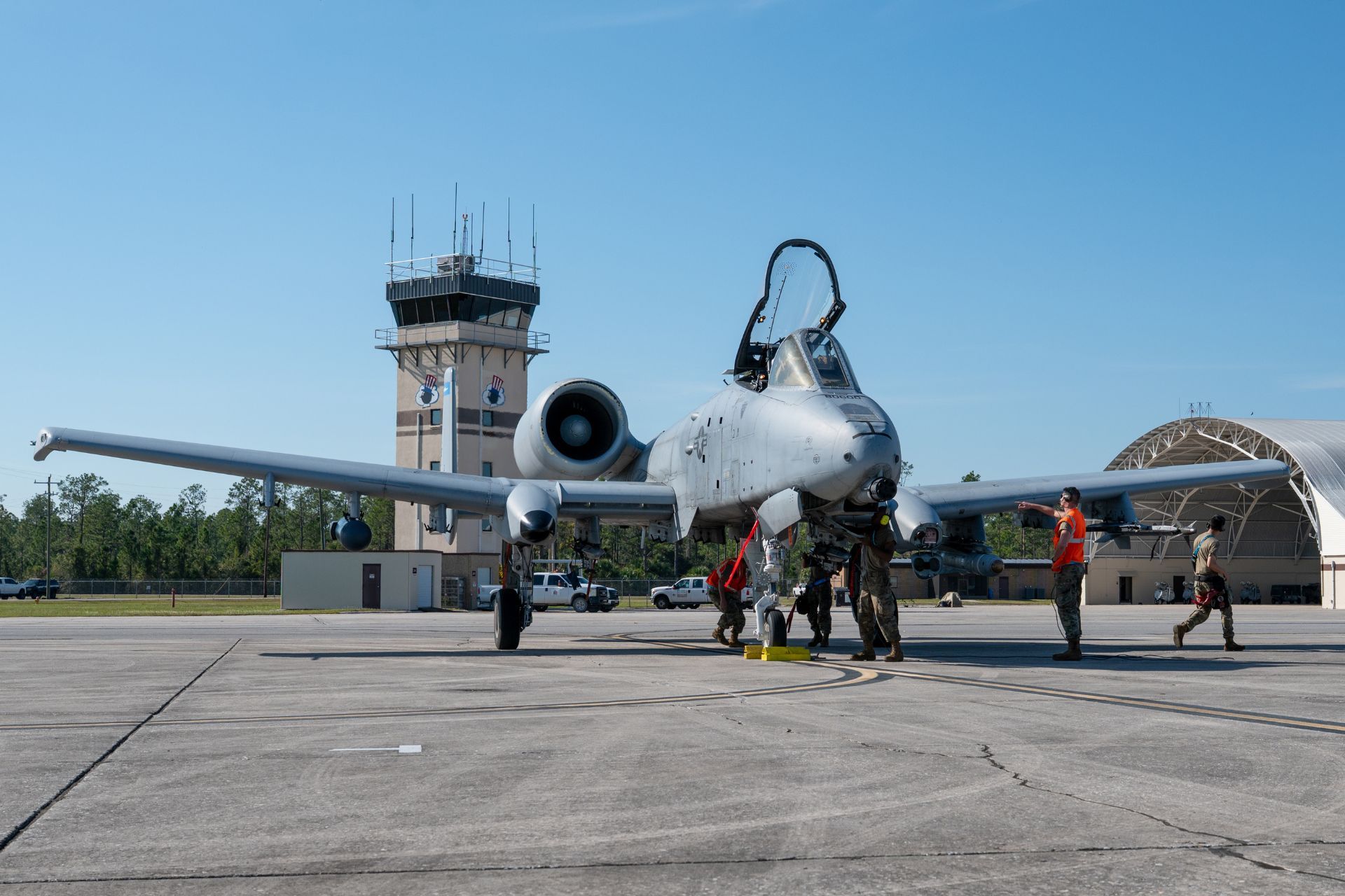 On Nov. 19, 2025, U.S. Air Force Airmen from the 23d Wing perform post-flight inspections on an A-10C Thunderbolt II as part of Integrated Combat Turns during exercise Mosaic Tiger 26-1 at Avon Park Air Force Range, Florida. (Picture source: US DoD)