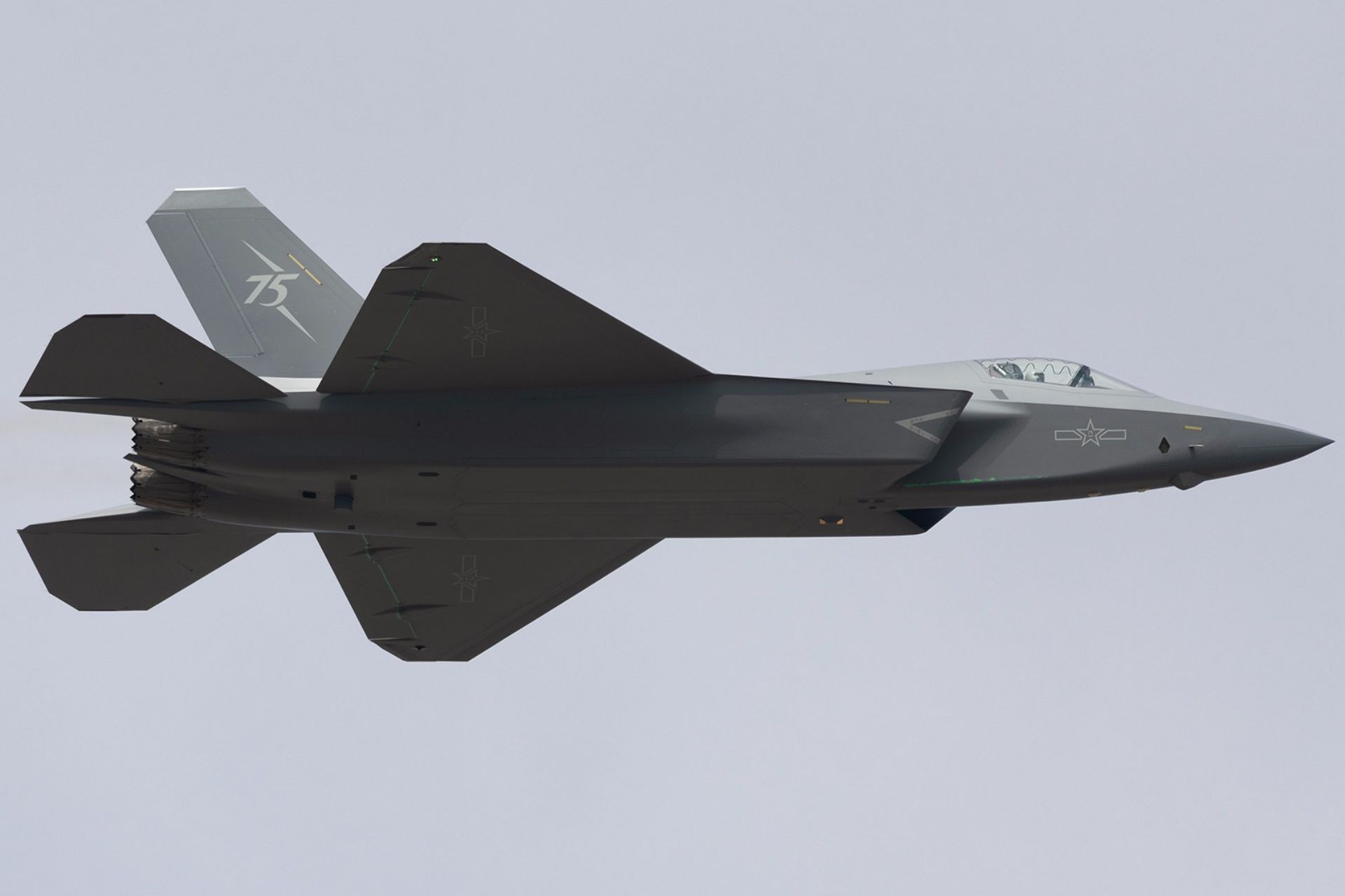 The J-35 features a low-observable twin-engine airframe, diverterless supersonic inlets (DSI), and internal weapons bays. (Picture source: @ZGGGRWY01)