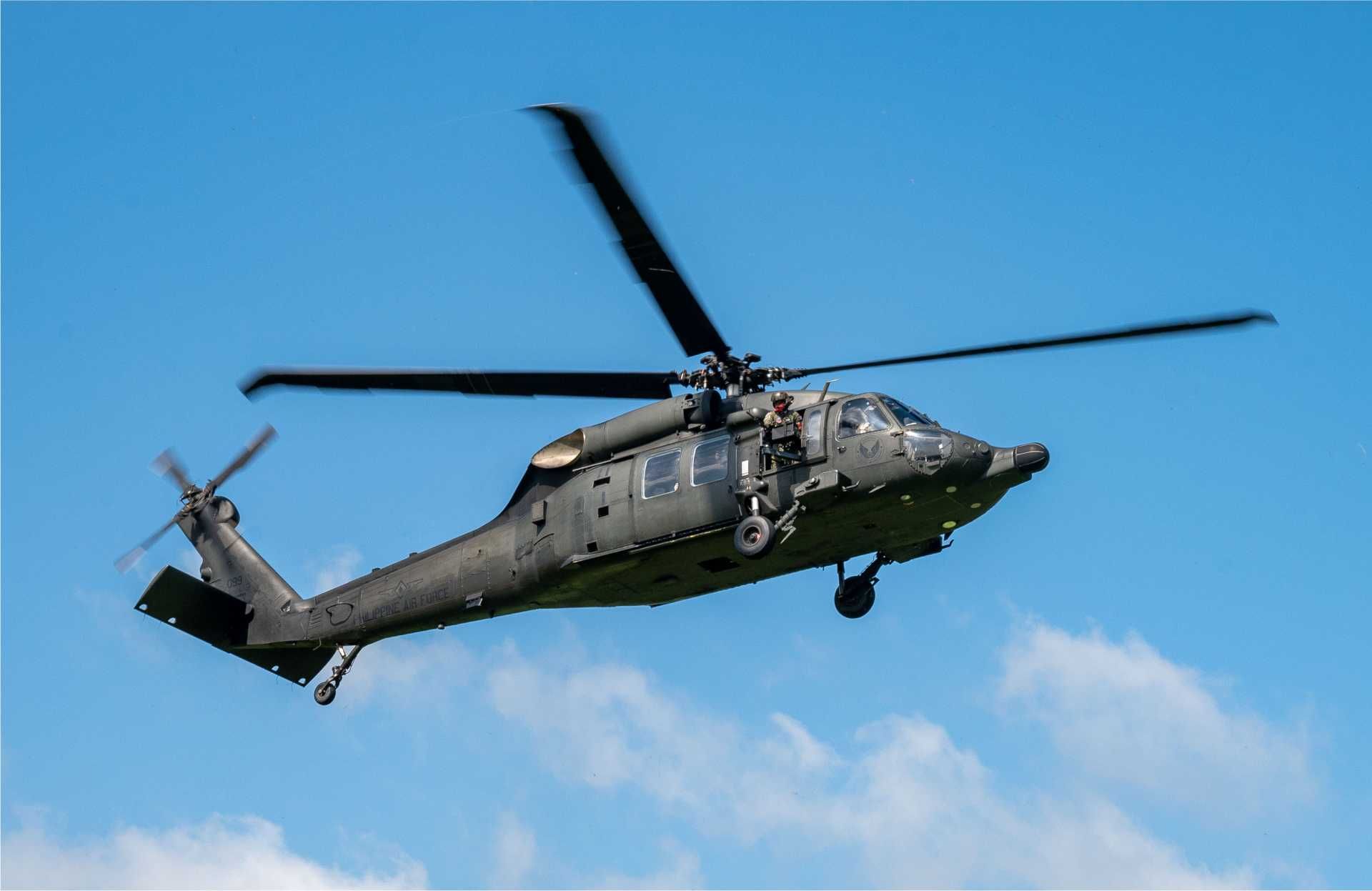 A Philippine Air Force S-70i Black Hawk helicopter approaches a simulated disaster site during a mass casualty exercise for U.S. and Philippine Air Force medical personnel at Clark Air Base, Philippines, on August 16, 2023, as part of the Pacific Airlift Rally 2023. (Picture source: U.S. DoD)