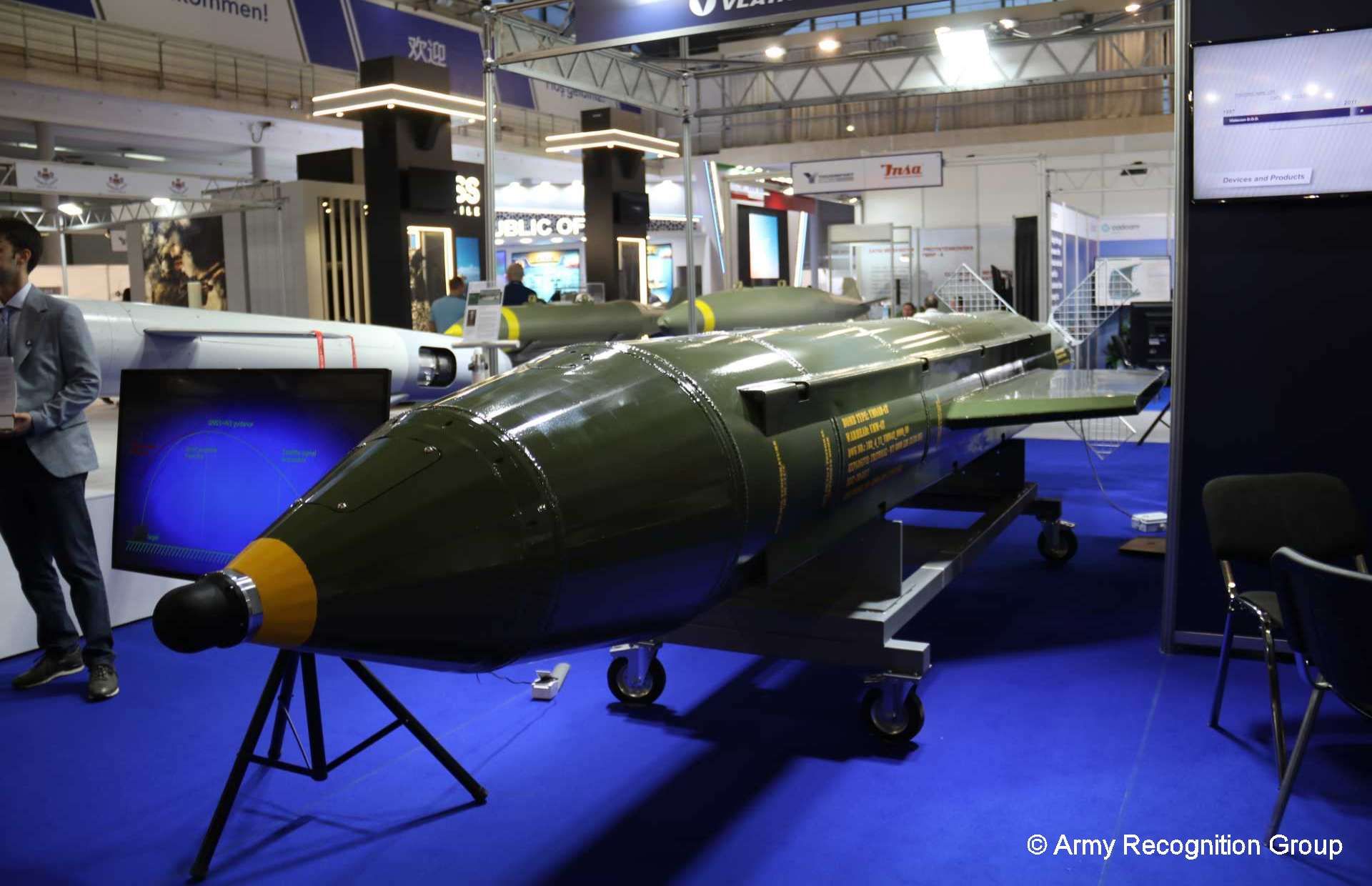 Serbia’s Vlatacom vMOAB-4t is a 4-ton guided air blast bomb designed for cargo aircraft delivery, featuring GNSS/INS guidance, grid fins, a massive warhead with airburst proximity fuze, and the ability to devastate soft and semi-fortified targets with overwhelming shock and fragmentation effects (Picture source: Army Recognition Group).