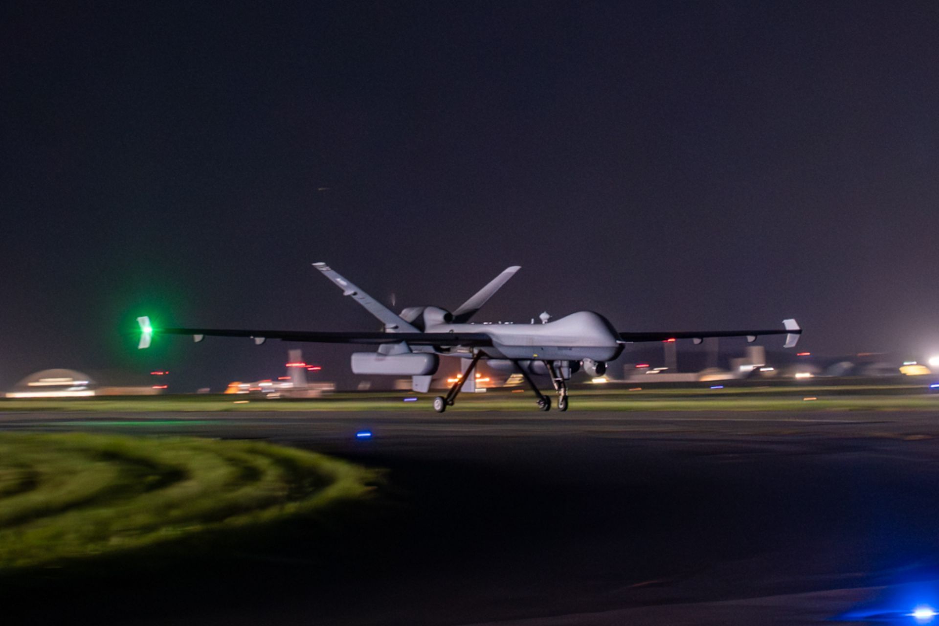 A U.S. Air Force MQ-9 Reaper, assigned to the 319th Expeditionary Reconnaissance Squadron, takes off from taxiway Lima at Kadena Air Base, Japan, on Oct. 9, 2025, during Project Lima BEAN (Picture source: US DoD)