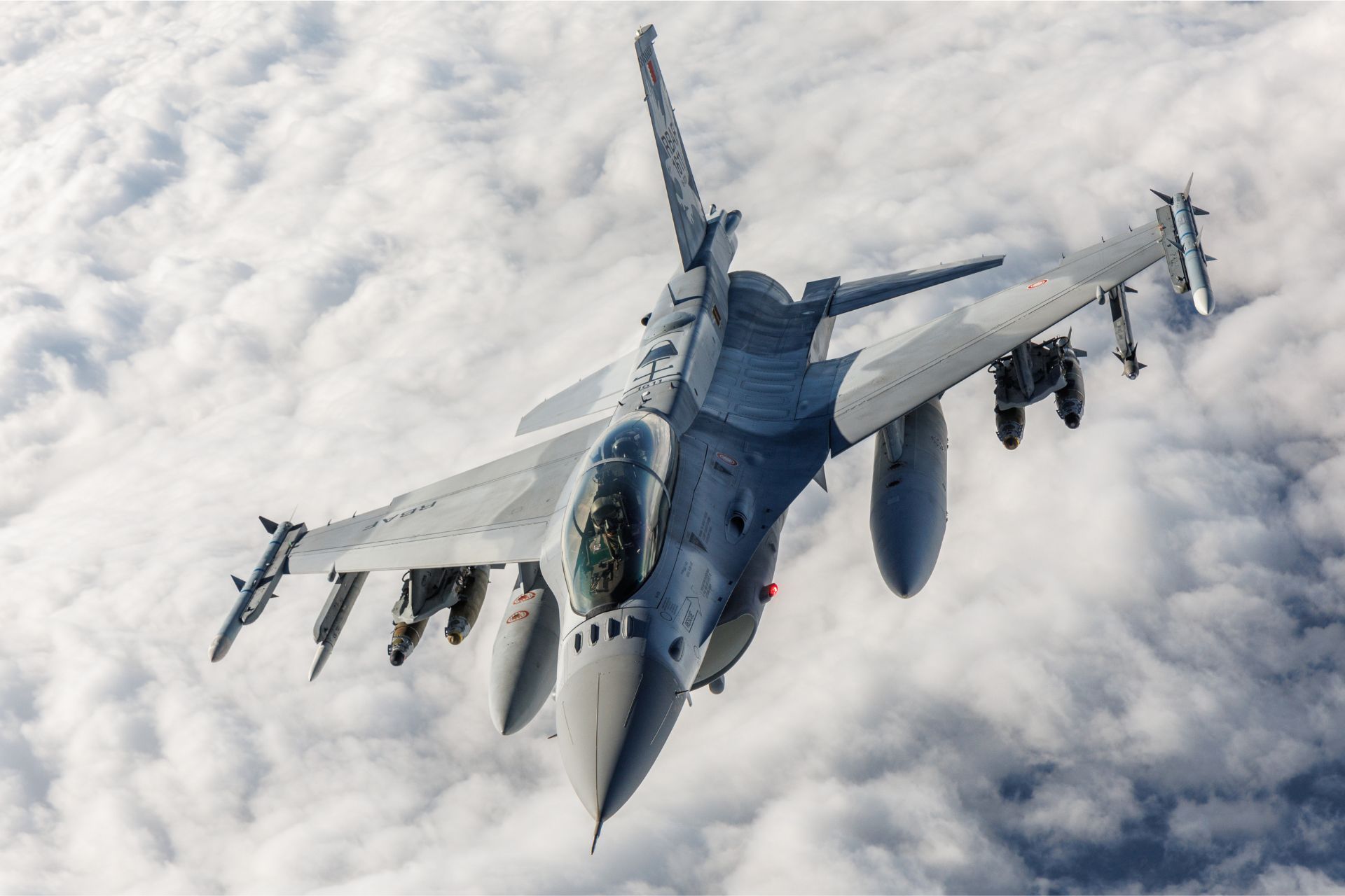 The F-16 Block 70 is the latest production standard of the single-engine multirole fighter. It features structural upgrades designed to extend service life to 12,000 flight hours, a GE F110-GE-132 engine producing nearly 30,000 pounds of thrust, and a radar system capable of tracking multiple targets in contested environments. The aircraft is fitted with a modern cockpit compatible with the JHMCS II helmet system and is configured for a wide range of roles, including air superiority, strike, and suppression of enemy air defenses. It can carry AIM-9X and AIM-120 missiles, JDAM and Paveway precision-guided bombs, AGM-88 HARM anti-radiation missiles, and long-range standoff weapons such as the AGM-158 JASSM and AGM-154 JSOW.