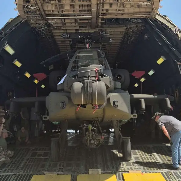 British Army receives three new Apache AH-64E attack helicopters from United States