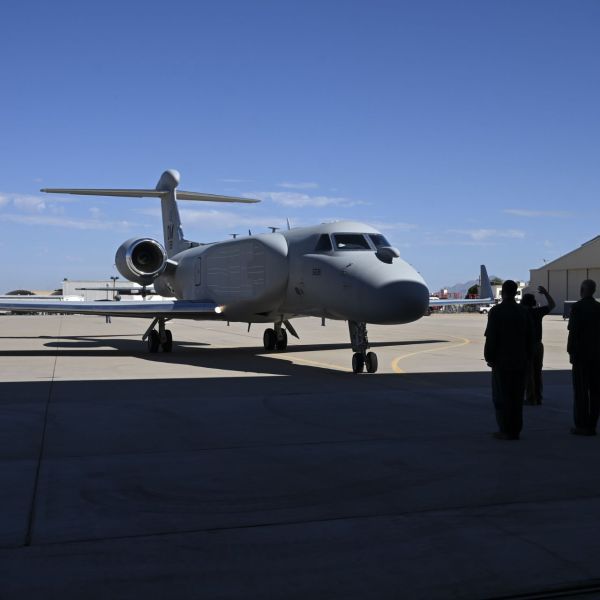 The first EA-37 Compass Call aircraft ready to undertake an Air Force mission took off last week for Davis-Monthan Air Force Base in Arizona, marki...