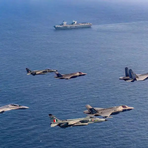 On 14 October 2025, Royal Navy F-35B Lightning IIs from HMS Prince of Wales flew with Indian Air Force Sukhoi-30MKI and Jaguar strike aircraft, sup...