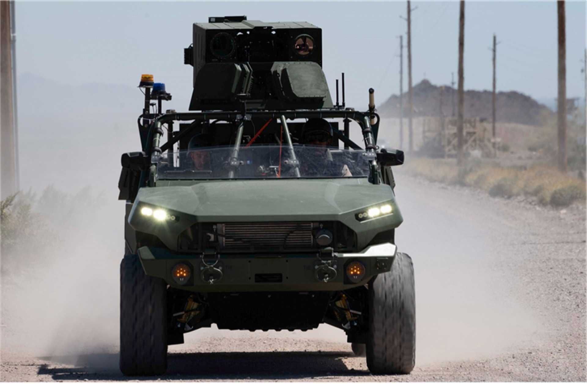 The U.S. Army Infantry Squad Vehicle is integrated with AeroVironment’s 20kW-class LOCUST laser weapon system, part of the Army Multi-Purpose High-Energy Laser (AMP-HEL) program, to provide lightweight, mobile counter-drone capability for frontline units. (Picture source: AeroVironment)