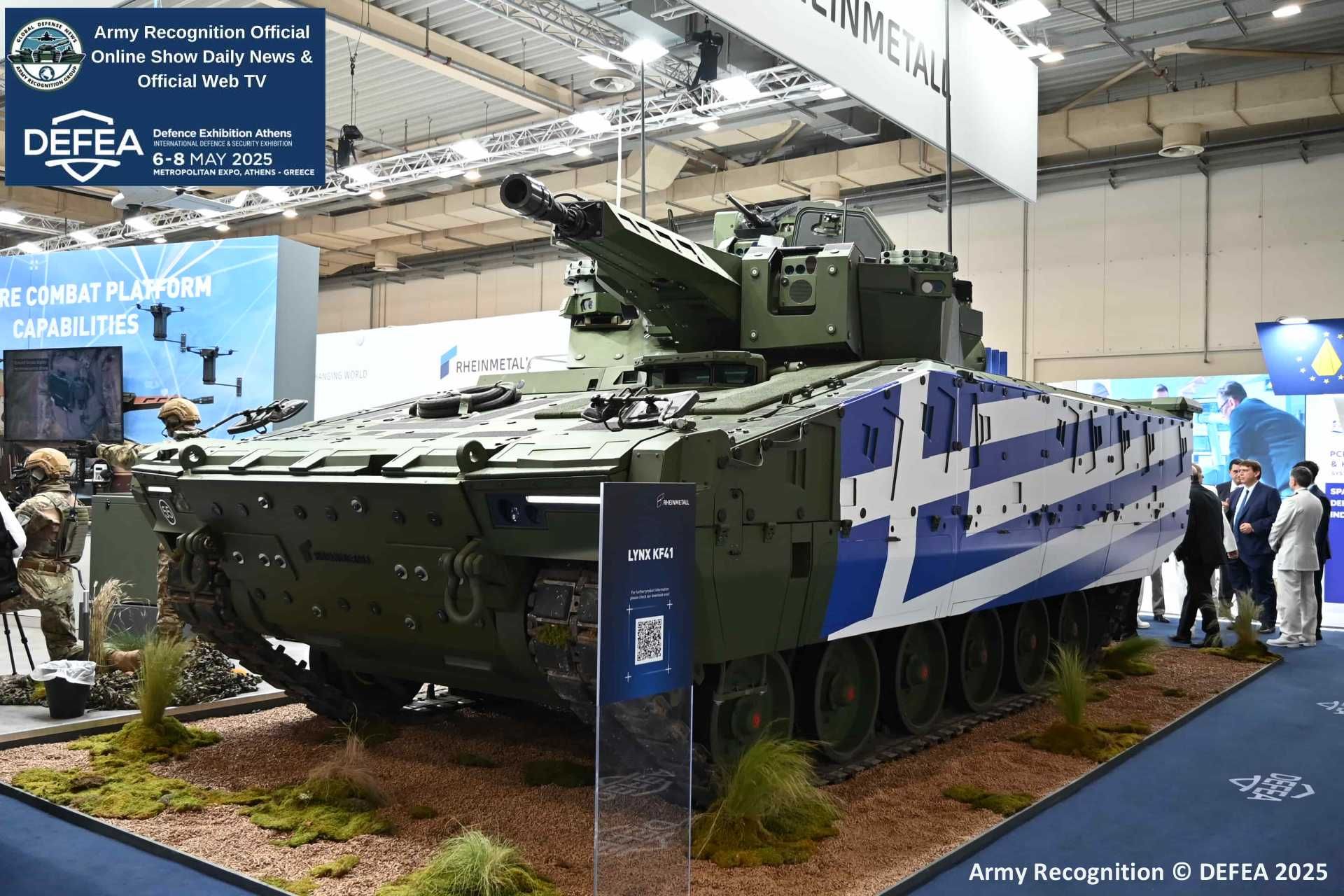 The Lynx KF41 was introduced by Rheinmetall in 2018 and represents an evolution of the earlier KF31 concept, originally launched in the mid-2010s. It was designed to address identified capability gaps in infantry fighting vehicles, particularly in terms of modularity and mission flexibility. The KF41 presented at DEFEA 2025 was a unit built as part of the Hungarian series production line, reflecting Rheinmetall's implementation of international manufacturing partnerships. Hungary is currently the only NATO country to have ordered and locally produced the KF41, under a government-to-government arrangement involving industrial offsets, local employment, and domestic training. The platform’s presentation in Athens aligned with Rheinmetall’s broader strategy to highlight its export offerings and examples of localized production.