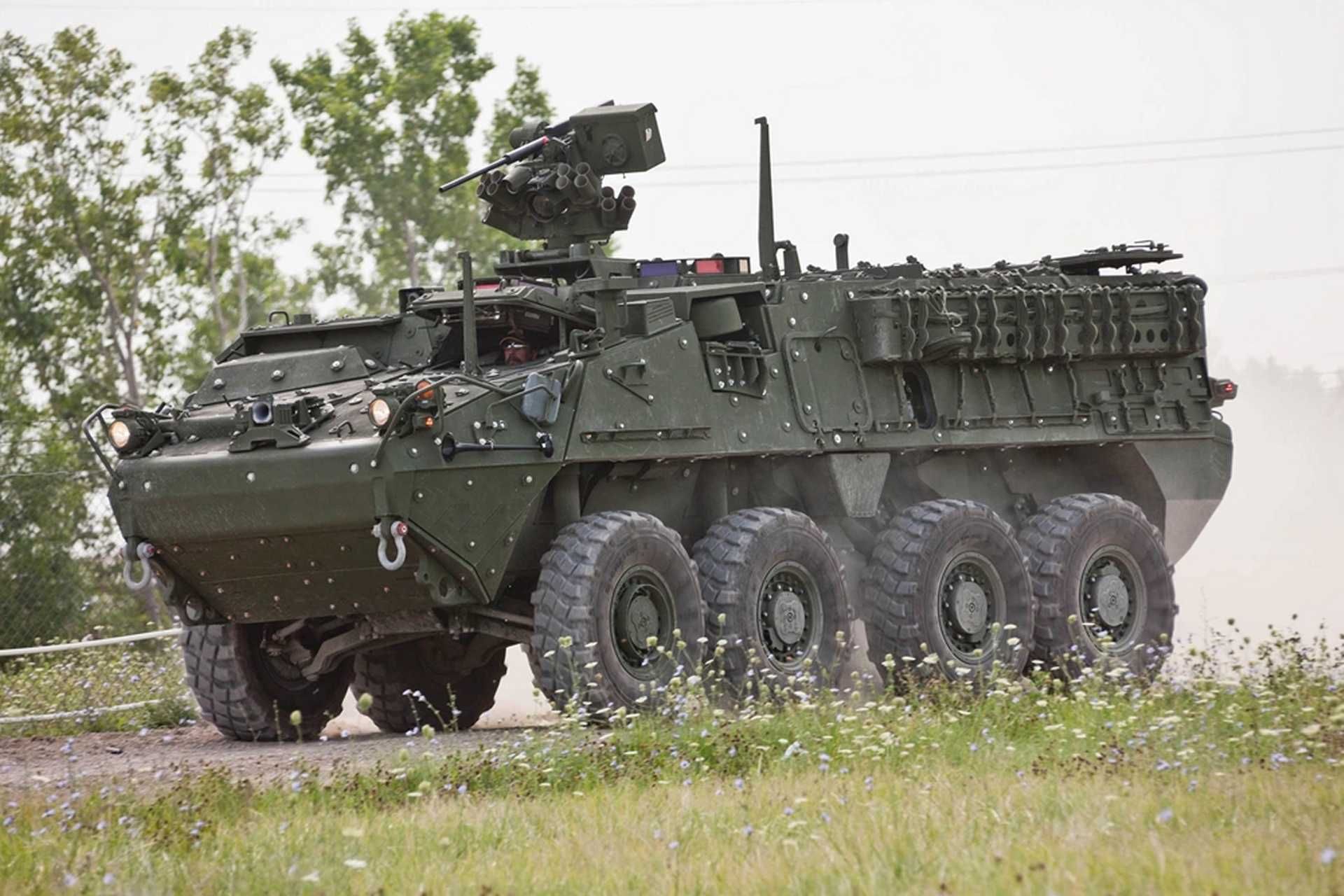 Like many modern armored vehicles, the Stryker platform is built with modularity in mind to support multiple combat roles. It offers base protection against 14.5 mm armor-piercing rounds, with optional enhancements such as slat armor, reactive armor tiles, and hull protection kits for defense against rocket-propelled grenades and IEDs. Powered by a 350-horsepower Caterpillar C7 engine, it can reach a top speed of 97 km/h with an operational range of 500 km. Its armament includes a .50 caliber M2 machine gun, a 40 mm Mk 19 grenade launcher, or, in upgraded variants like the Dragoon, a 30 mm Bushmaster cannon with airburst munition capability. Specialized configurations, such as the Mobile Gun System with a 105 mm cannon and the Maneuver Short-Range Air Defense (M-SHORAD) system, expand its operational versatility. While effective in urban and asymmetric warfare, its wheeled design limits off-road performance, and it lacks amphibious capabilities.