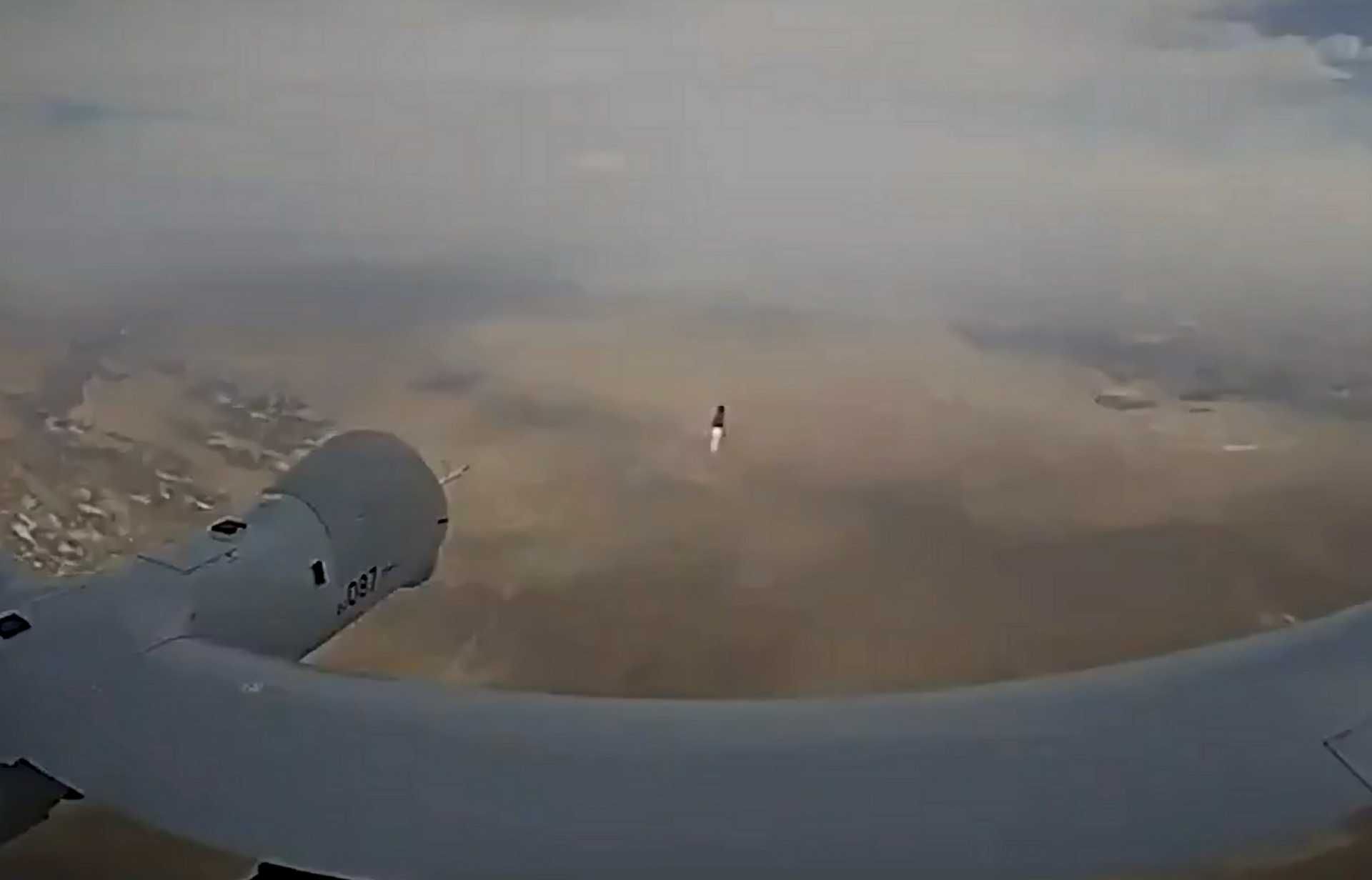 Turkish Anka Aerial Drone Firing L-UMTAS Anti-Tank Guided Missiles in Precision Strike. (Picture video footage Turkish Aerospace Industries)