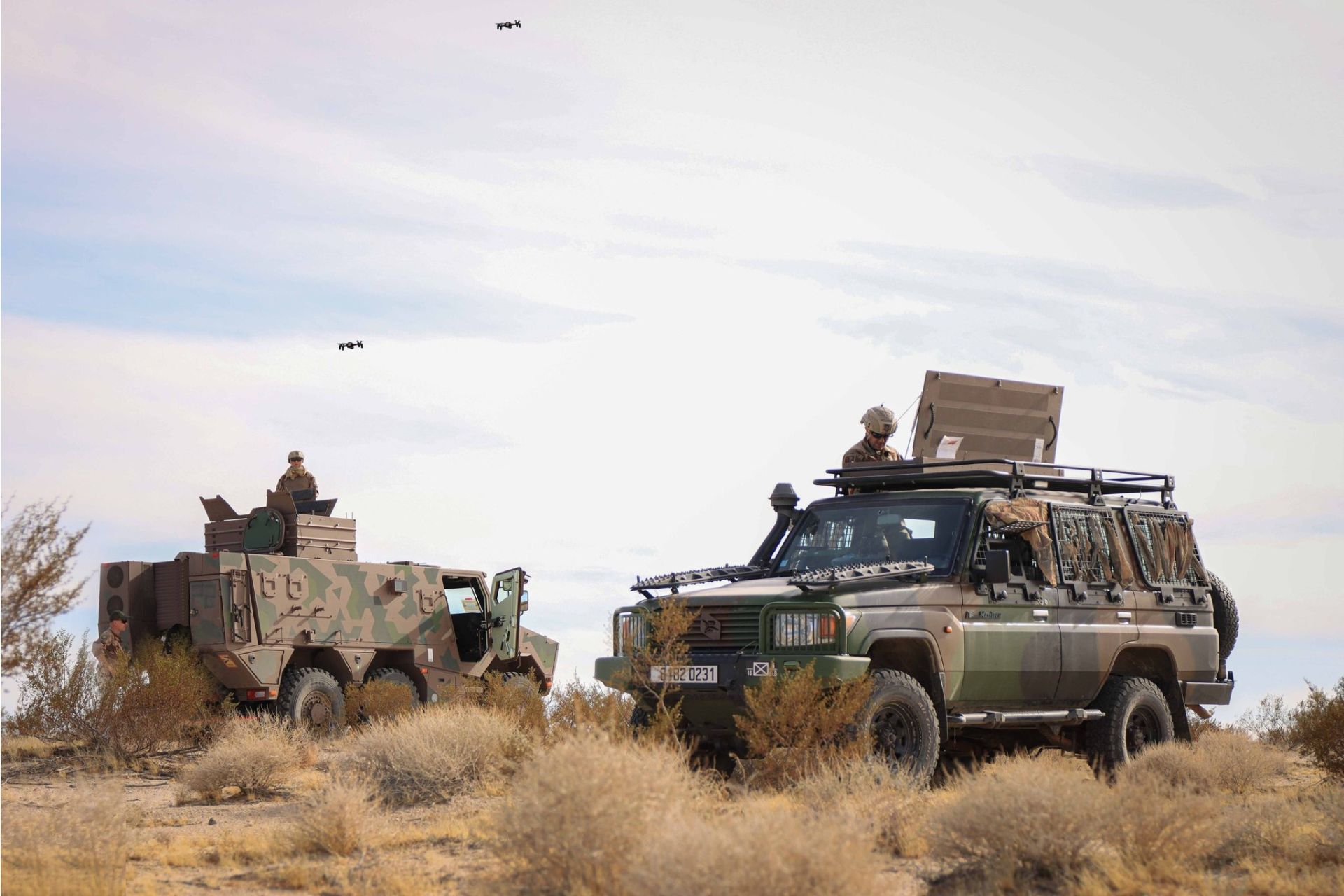 During Capstone 5, the 13e DBLE’s SRRI tested two automated "hives" on a Griffon and a Masstech vehicle, enabling rapid drone swarm deployment and seamless C2 integration. (Picture source: French MoD)