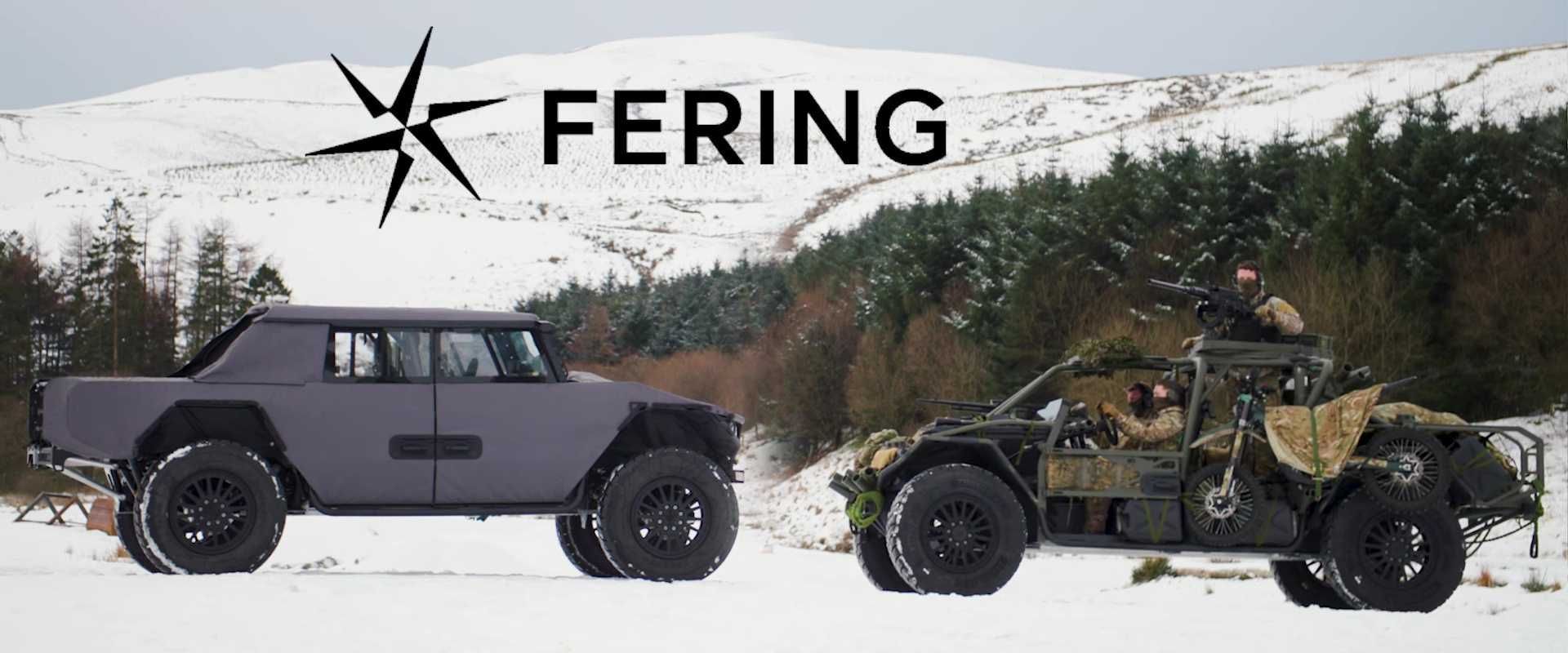 The Pioneer X is based on the Fering Pioneer, introduced in 2021. Designed by Ben Scott-Geddes, the original model featured a fabric body over an aluminum chassis and emphasized efficiency and autonomy. The military variant incorporates a hybrid powertrain with multifuel compatibility, achieving 50 mpg without battery support. The design includes fording capabilities of up to 1,400 mm, the ability to traverse 50° angles, and climb gradients of up to 60%. While the fabric exterior is not armored, it contributes to the vehicle’s reduced weight and adaptability.