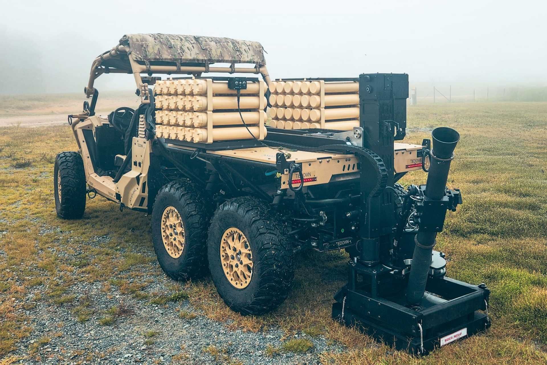 Operators of the Scorpion Light mortar system can pre-program up to 1,000 targets, accept data from forward observers, command centers, or unmanned aerial systems, and conduct automatic re-aiming in seconds. (Picture source: Polaris Government & Defense)