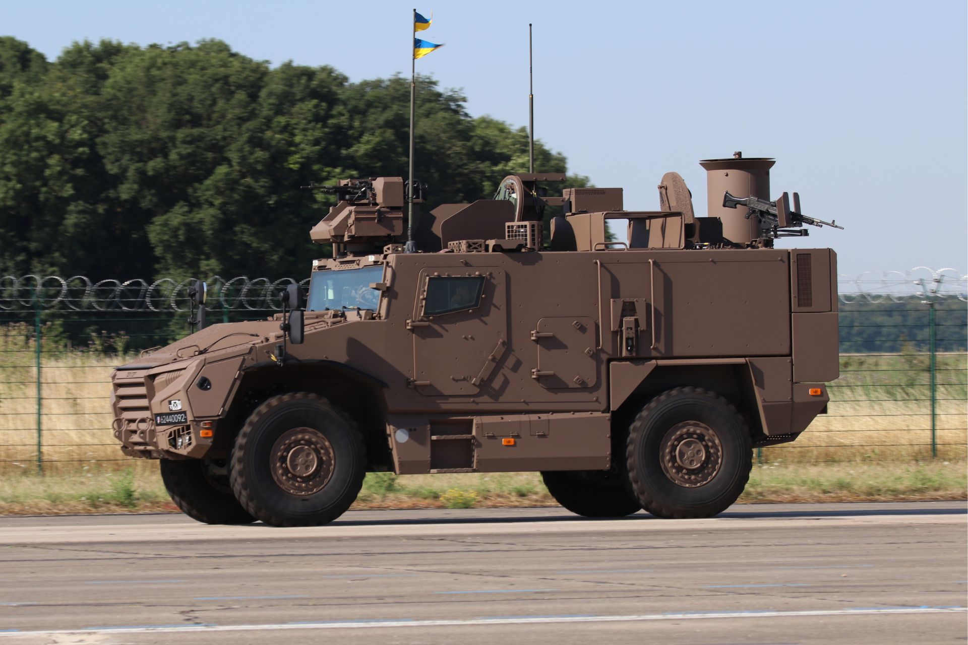 Technically, the Serval is a medium-weight armored vehicle with a combat weight typically ranging between 15 and 17 tons depending on configuration. It measures approximately 6.5 meters in length, 2.53 meters in width, and 2.46 meters in height at roof level, allowing it to combine compact dimensions with a spacious internal volume. The vehicle is crewed by two soldiers, a driver and commander, and can carry up to eight fully equipped troops or mission specialists. Protection is provided by modular composite armor offering ballistic resistance against small arms fire and shell splinters, combined with reinforced mine and blast protection against IED threats. Optional ballistic overprotection kits and CBRN protection systems further enhance survivability in high-threat environments.