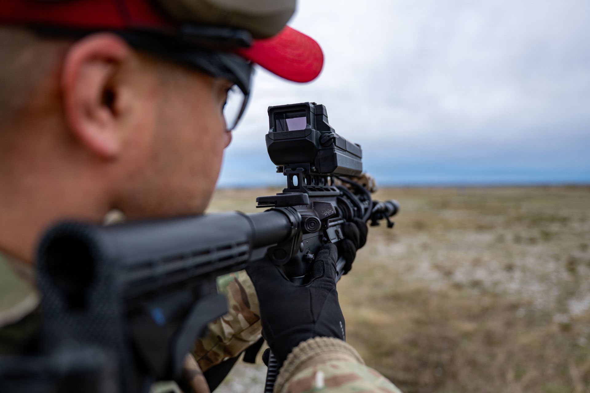 U.S. Air Force Tech. Sgt. Edgar Bravo, chief of the 31st Security Forces Squadron Combat Arms Training and Maintenance section, fires an M4 carbine equipped with a SMASH 2000L fire control sight at Cellina Meduna Range, Italy, on March 26, 2026. (Picture source: US DoD)