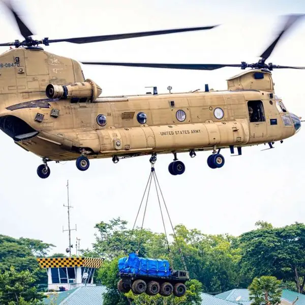 U.S. Chinooks Airlift S-MET Robotic Mules for the First Time in Jungle Drills in Southeast Asia
