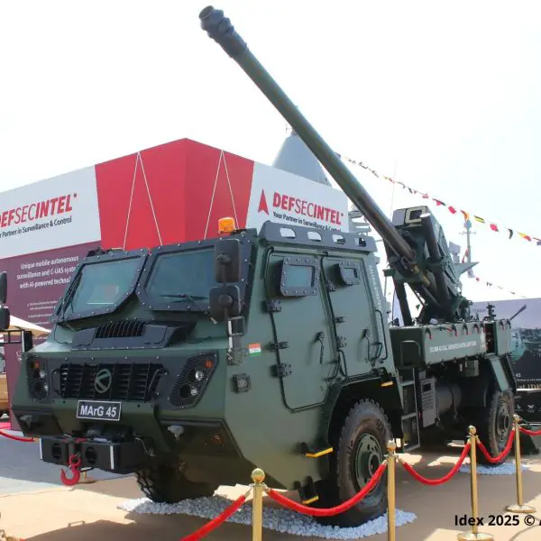 At IDEX 2025 in Abu Dhabi, Kalyani Group introduces the MArG 155-BR, a 155mm / 39 caliber mobile artillery system mounted on a 4x4 all-terrain vehi...
