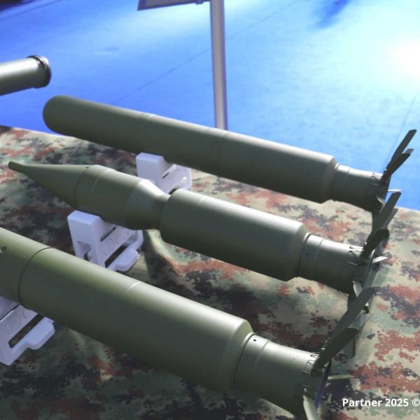 At Partner 2025 in Belgrade on 25 September 2025, Serbia showcases a modernized 90 mm OSA M79 anti-tank rocket alongside its reusable launcher fami...