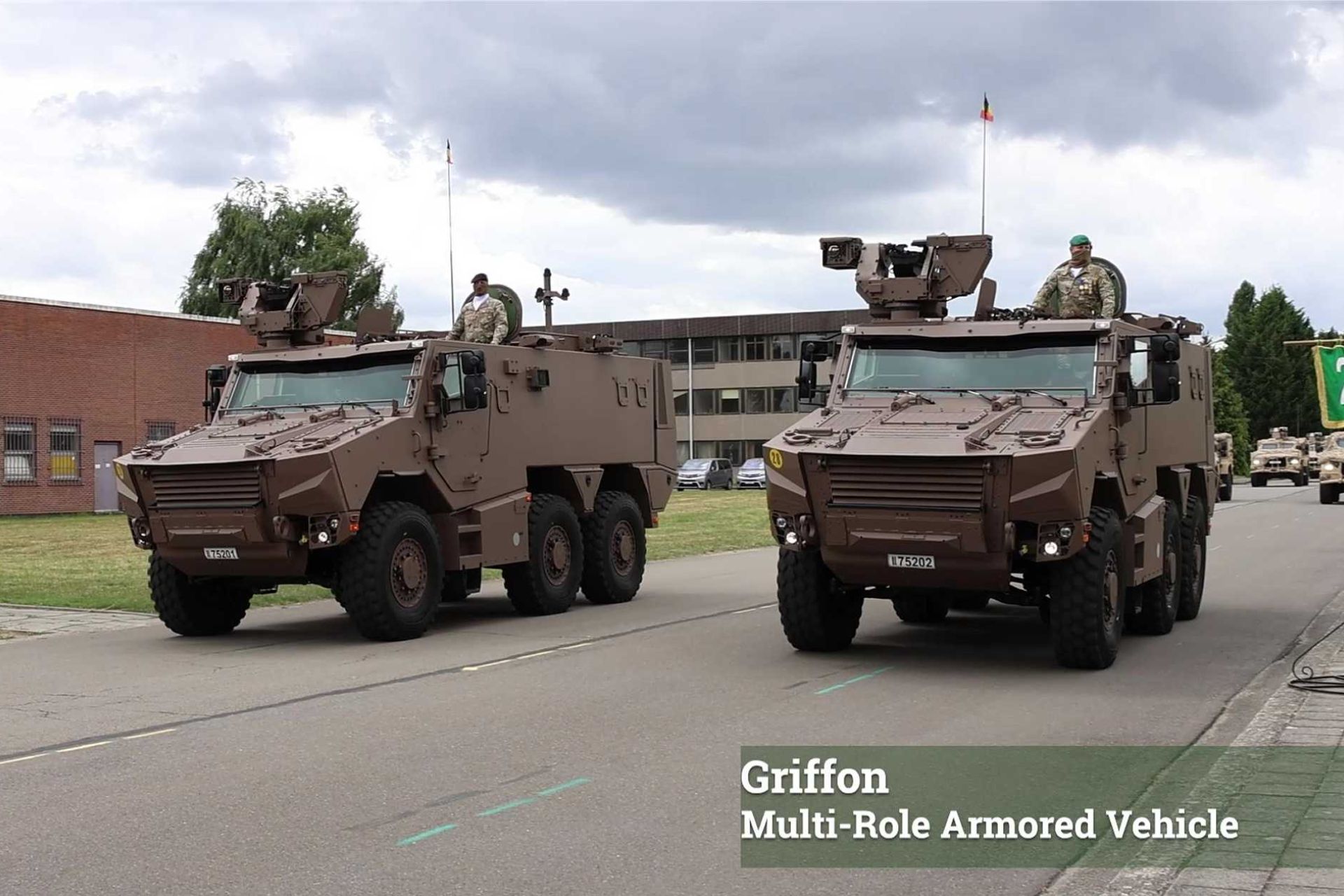 Belgian Army Showcases New Armored Vehicles Griffon and Falcon CLV at National Day Military Parade 2025.