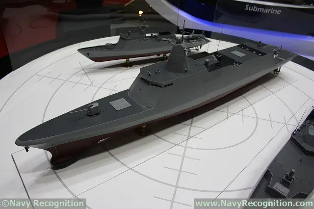 DSME showcasing its next generation KDDX Destroyer for ROK Navy at Indo Defence 2014.