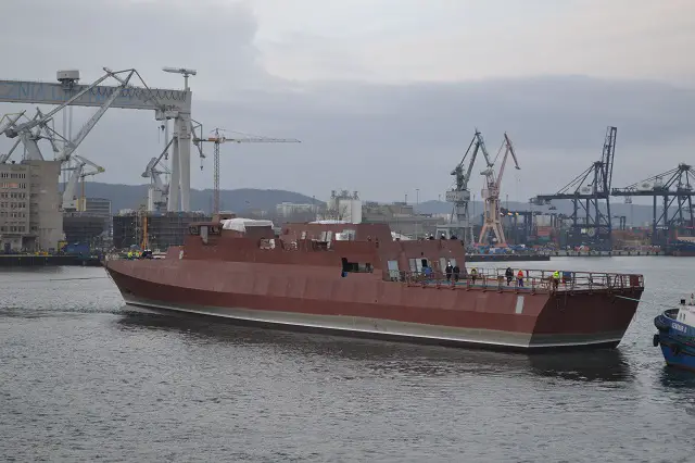 Future Polish Navy Offshore Patrol Vessel ORP SLAZAK Launched at Gdynia Navy Shipyard.