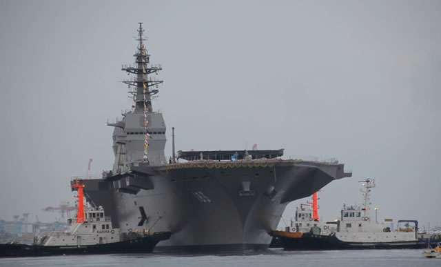 is the largest warship built by Japan since World War II. The 248-meter-long and 19,500-ton helicopter carrier was unveiled for the first time in August 2013 in Yokohama and is set to be commissioned into service in 2015. |