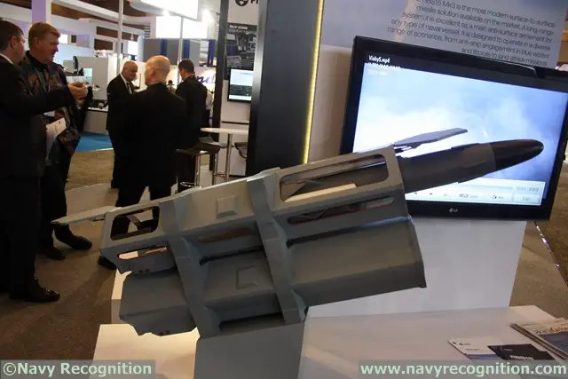 The RBS15 anti-ship missile (seen here in a scale model at Indodefence) will be the main surface to surface weapon system onboard the Stealth FAC |
