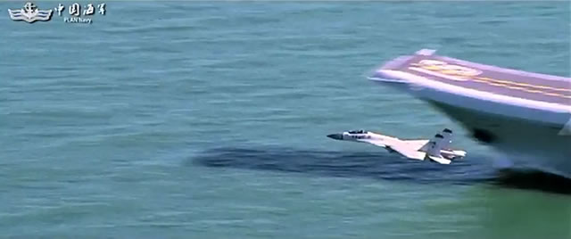 - While the scenes showing fighters and Liaoning aircraft carrier at