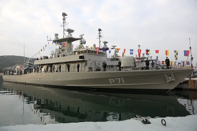 ![]() The HS Ritsos (P71) fast attack craft during the induction ceremony. Picture: Hellenic MoD |