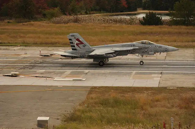 AAG traps first aircraft  Advanced Arresting Gear (AAG) completes a first-of-its-kind recovery of an Air Test and Evaluation Squadron (VX) 23-assigned F/A-18E Super Hornet at the Runway Arrested Landing Site in Lakehurst, N.J., Oct. 13. (U.S. Navy photo)