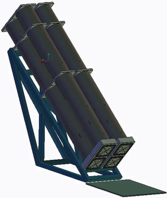 ![]() Computer rendering of a top side (deck mounted) LRASM launcher. Four missile canisters per launcher. Image: Lockheed Martin |