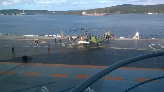 the landing of a Ka-52K helicopter on the carrier sitting at the 35th