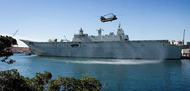 far. "The CH-47F has been in service in the Australian Army for just over a year and only recently achieved Initial Operating Capability and the F model will shortly be ready to take over from the CH-47D," Major Campbell said. "As part of the deck trial we simulated landing in rough weather where the aircraft may land off from its designated landing spot. "This is to make sure the rotor blades stay clear of any structures on the ship." Major Campbell said that useful data gathered and great working relationships were formed. "We collected a lot of raw data about what the aircraft was doing but from the personnel side we had a lot of integration and interface between the Army personnel from 5th Aviation Regiment and the ship's company of Canberra," he said. "This helps to make sure all those key people like Aircraft Life-Support Fitters and Forward Army Refuelling personnel know how they can integrate with the ship and fit in with the work flow." Canberra will sail shortly to take part in Exercise RIM OF THE PACIFIC in Hawaii, which will be the ship's first international exercise. |