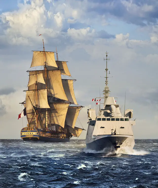 FREMM Frigate and L'Hermione. The Naval Group name focuses on the heritage of 400 years of experience, established in the 17th century and passed down from generation to generation allowing France to become and remain a great naval power, today exporting its know-how to support the sovereign interests of its international partners at sea. |