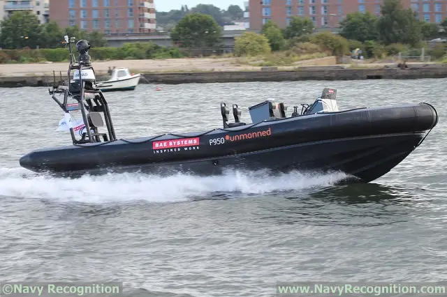 Now it’s set to play a vital role in a demonstration which has been specially devised to show how it can be used to support the safe boarding of Royal Marines onto a Royal Navy Type 23 Frigate. “This technology delivers an extremely robust and fast-moving unmanned boat that is able to perform a number of roles, even when operating at high speed or in choppy water,” said Les Gregory, Product and Training Services Director at BAE Systems. The latest scenario is played out in Victoria Dock outside ExCel London, twice a day throughout the DSEI 2017 event from 12-15 September. The P950 RIB, produced in Portsmouth, is capable of operating autonomously or under remote control at speeds of up to 47 knots for up to 12 hours at a time. It can carry out high speed navigation in congested water spaces as well as a variety of pre-programmed military tactics with less risk to troops on the front line. On board is an advanced array of sensors, including a radar, 360-degree panoramic heat-seeking camera and a high performance stabilised camera pod.