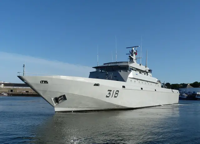 - Hull and structure overhaul o Hull and capacities inspected and repaired o Most of side and bottom shell plating replaced - Coating and painting of all the vessel (hull, superstructure, tanks and technical rooms stripped and painted) - Refurbishment and modernization of all premises o Refurbishment of the accommodations: insulation, bulkhead, ceilings, furniture, sanitary, lighting, sockets, switches, TV, hi-fi stereo dismantled and replaced o Resin floor coating fitted in accommodations o New stainless steel kitchen built (bulkhead and equipment replaced) - All installations inspected and replaced when necessary o Main engines removed and painted o New gearboxes integrated and fitted o Shaftline, propellers and controllable pitch propeller station removed and controlled, shaftline liners replaced o Main engines and propeller pitch control system integrated o Steering gear overhauled o Electrical production system replaced and two new generators installed in engine room o Slow propulsion re installed: two new 300 kW electrical engines integrated and fitted o Emergency generator replaced o All networks and equipment inspected o Osmosis plant, fuel oil and oily water separators, bilge pump system replaced o Electrical cabinets and networks, pumps engines and fans overhauled o Refrigerating plants of the cold-storage rooms and ammunition store replaced o Air-conditioning system in accommodations overhauled o Sren door hydraulic system inspected and gasket replaced o Deck fittings overhauled and mooring lines replaced Vincent Faujour, PIRIOU group CEO declares: ‘’PIRIOU, in accordance with its global service strategy, carries on with its partnership with the Royal Moroccan Navy. Following the delivery of the 50 m land craft tanker SIDI IFNI in July 2016, we just delivered the RAIS BARGACH patrol vessel after major refit. It will be followed by the delivery of the 72m oceanographic multi-mission vessel presently under construction at PIRIOU shipyard in Concarneau’’. RAIS BARGACH main characteristics Length overall ……………………………………..…. 64 m Breadth overall …………………………………….. 11.4 m Draught ..................................................................... 3 m Displacement .......................................................... 600 t Speed ……………………………………………..….. 23 kn Main engines ……….… 2 x WARTSILA NOHAB 16V25 Power ............................................................. 7600 kW Slow propulsion …….…...…... 2 x electric engines ABB Total power…………..…………………………..…600 kW