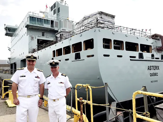 The vessel has a full load displacement of 26,000 tonnes with a legnth of 1182.5 meters and a beam of 25.2 meters. It is fitted with a Phalanx CIWS, L3 MAPSS integrated platform management system (IPMS) and large landing deck capable of handling the largest helicopters, including the CH-147F Chinook. Asterix will be used for at sea fuel replenishing for both liquid and solids using NATO-standardised methods and two cranes for loading and unloading purposes. The ship will be able to deliver 400 tons of fresh water per day and carry 7,000 tons of fuel oil and 980 tons of JP8 Jet fuel. The Resolve-Class Auxiliary Oiler Replenishment ship will play a key role in the Royal Canadian Navy's HADR efforts.The specific HADR capabilities include: A humanitarian processing area for triage and care of evacuees/survivors A large medical facility for up to 60 patients in two separate wards Emergency accommodation for up to 350 people (in addition to the ship's current 150 persons capacity) A ship-shore airlift capability via the two embarked Cyclone CH-148 helicopters A significant small craft capability that includes up to 8 boats with quick launch and recovery capabilities The ability to sustain the delivery over 400t/day of Fresh Water and up to 7000t of Fuel Oil, as well as significant power The transportation and self-sufficient loading and unloading of light vehicles, sea containers and general cargo that are essential for HADR missions. |