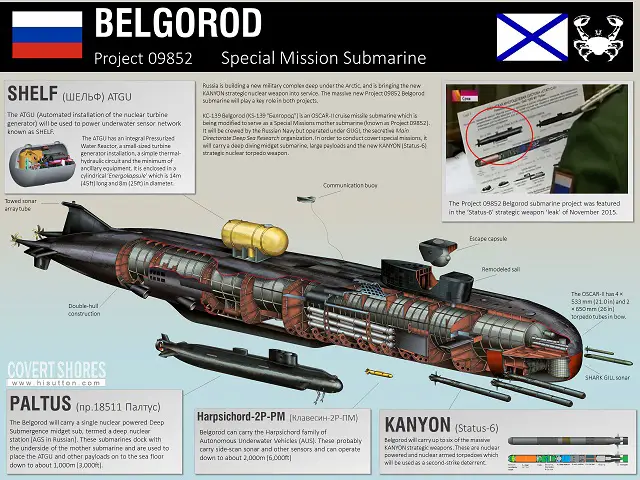 Russian Navy to commission Project 09852 KS-139 Belgorod special mission submarine in 2018