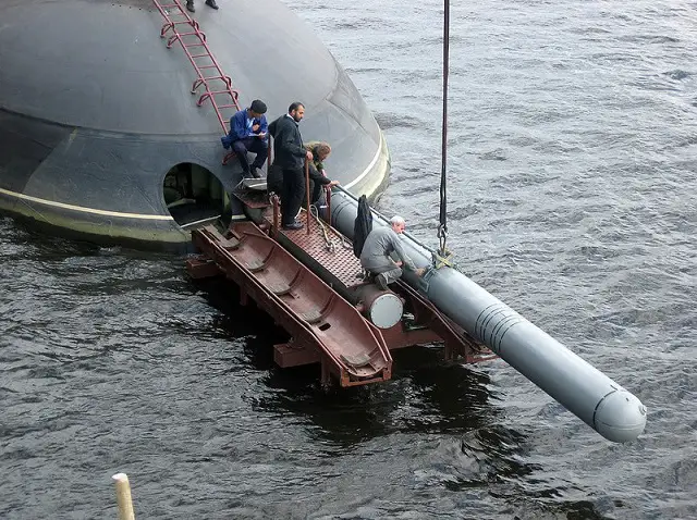 Loading of a Kalibr cruise missile aboard a Kilo-class submarine |