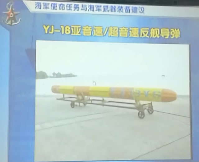 As we mentionned in August 2015, Chinese media claim the YJ-18 system is designed for the destruction of various surface ships from an enemy’s landing squadrons, convoys, carrier strike groups, as well as single vessels and land-based radiocontrast targets in conditions of intensive fire and electronic countermeasures.