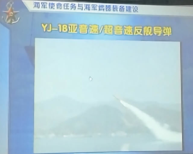 The above video released in August 2015 shows a YJ-18A test launch from one of the two Type 909 test ship of the PLAN. These vessels can be fitted with various weapon and sensor systems and serve as test beds for the PLAN's future systems.