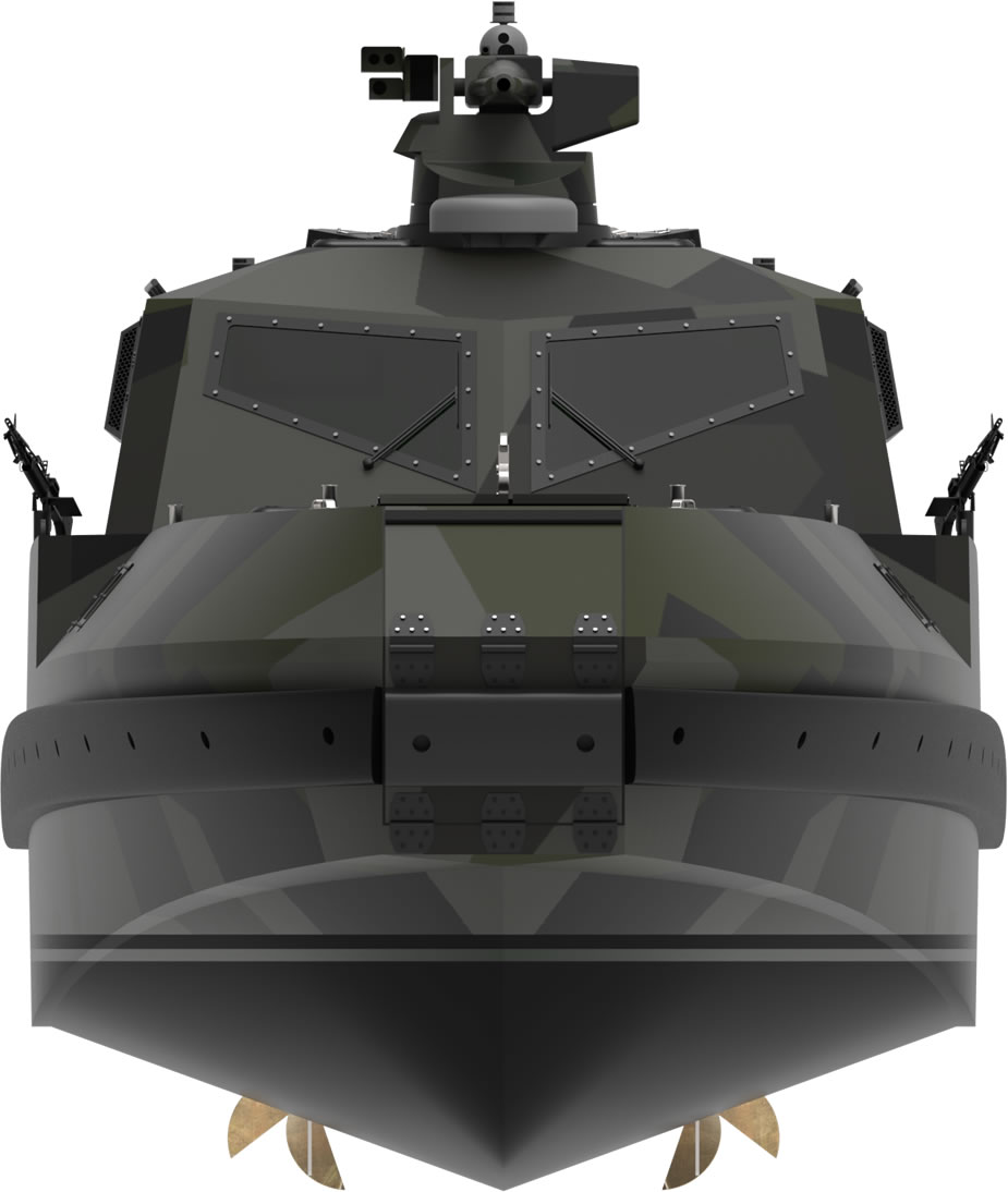 The vessel has a crew of 3 and can accommodate 20 special forces soldiers (plus 2 commanders). It is fitted with a Leonardo Hitrole 12.7mm remote weapon station (RWS), two Rheinmetall ROSY decoy launchers, and a fully armored pilothouse and troops compartments (armor provided by Rheinmetall). The combat management system is the SeaGuardian by ASTIM.