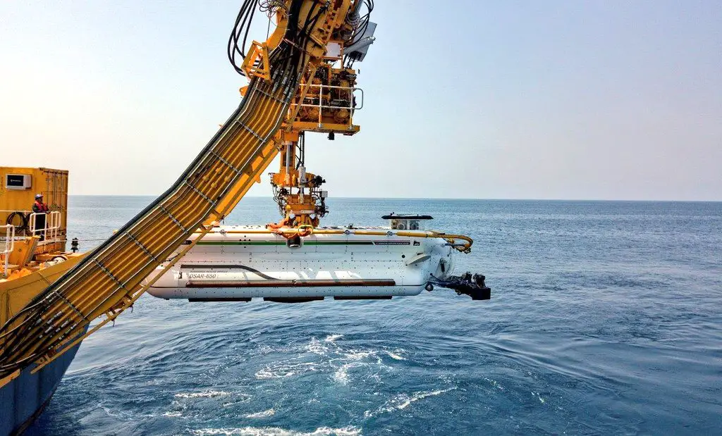 One DSRV being launched the water from an Indian supply vessel (Picture Source: Indian Navy)