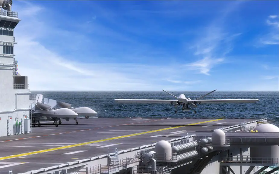 Artist rendering of MQ-9B SeaGuardian UAS on a US aircraft carrier (Picture source: GA-ASI)