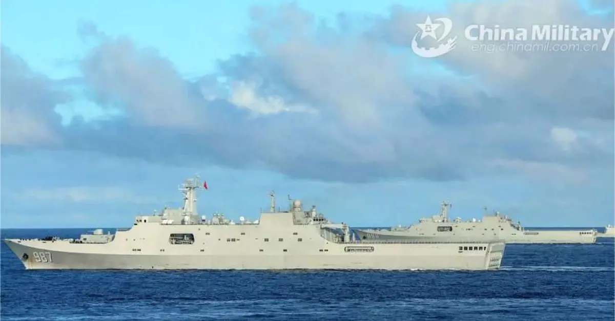 Two amphibious landing ships from the Chinese People’s Liberation Army (PLA) Navy were recently observed in the waters off Taiwan's eastern coast. (Picture source: China MoD)
