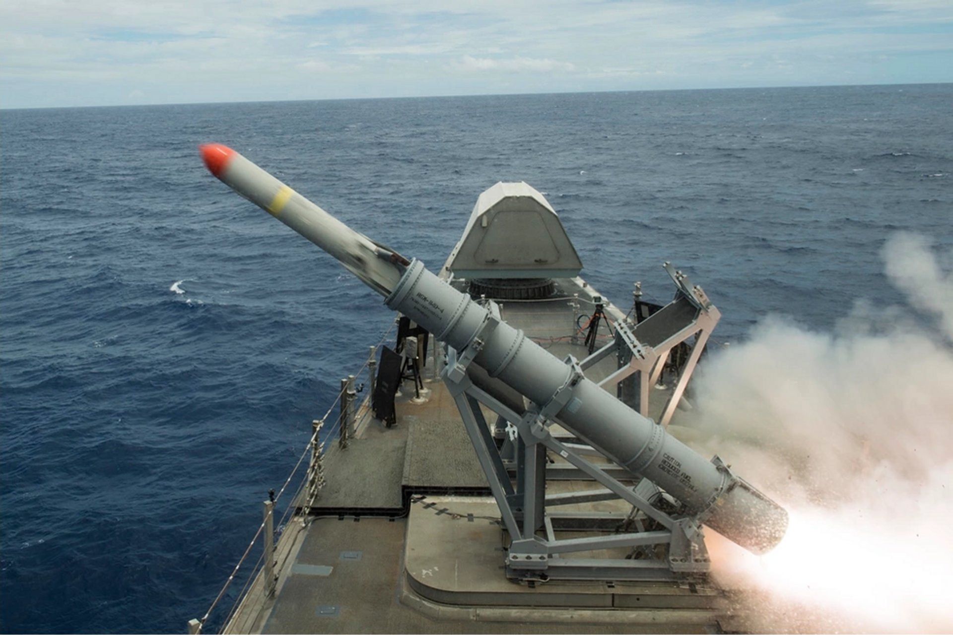 US Navy's Independence-variant littoral combat ship USS Coronado launching Harpoon Block 1C missile. (Picture source: Dvids)