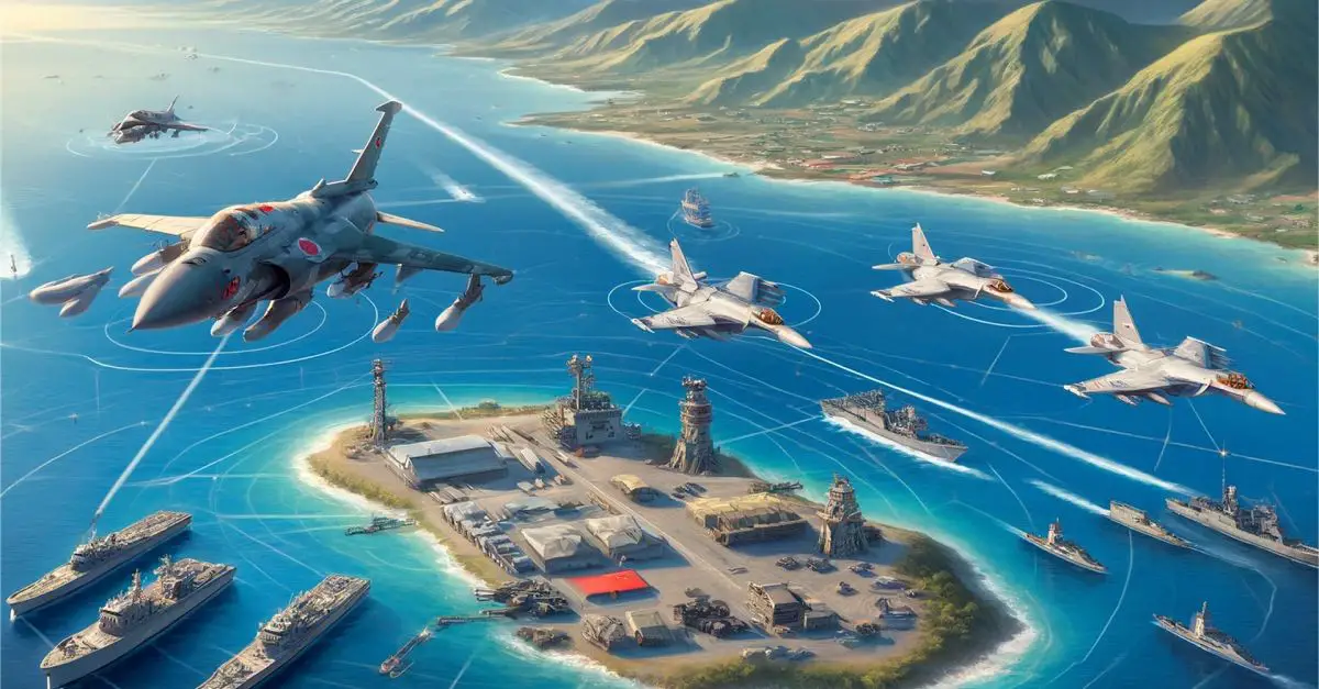 Artist rendering of the Joint Sword-2024A exercise around Taiwan. (Picture source: Generated by AI)