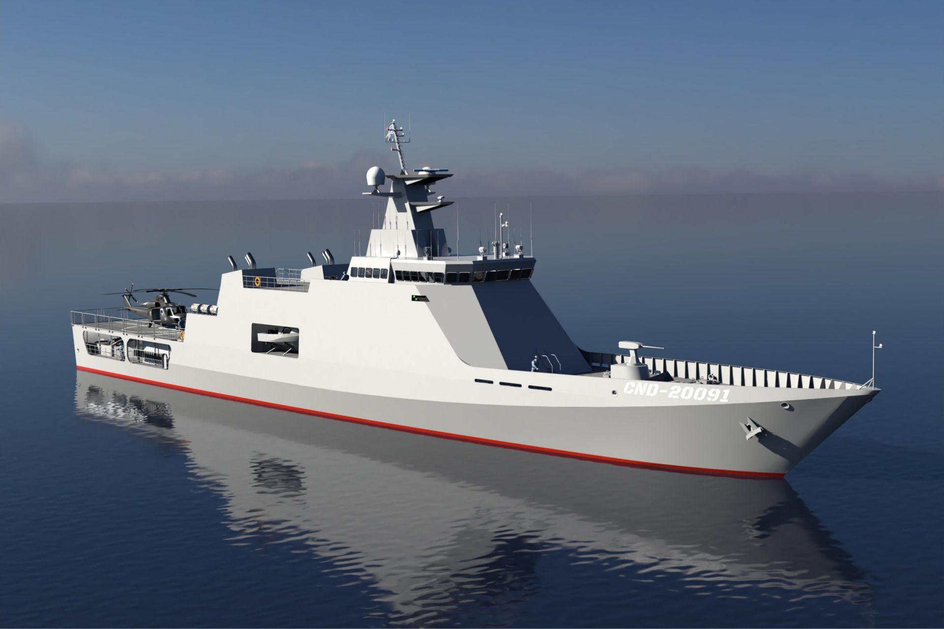 Each OPV will have a displacement of 1,700 tons, measuring 86.75 meters in length, 12.20 meters in beam, and a draft of 3.60 meters. The vessels will be powered by Caterpillar engines, equipped with controllable pitch propellers and a dynamic stabilization system to support helicopter operations. They will also feature two rapid-intervention boats launched via stern ramps, along with an auxiliary and rescue craft designed to meet Solas safety protocols. Beneath the flight deck, a multifunctional container system will provide space for equipment necessary for specialized missions, such as pollution control.